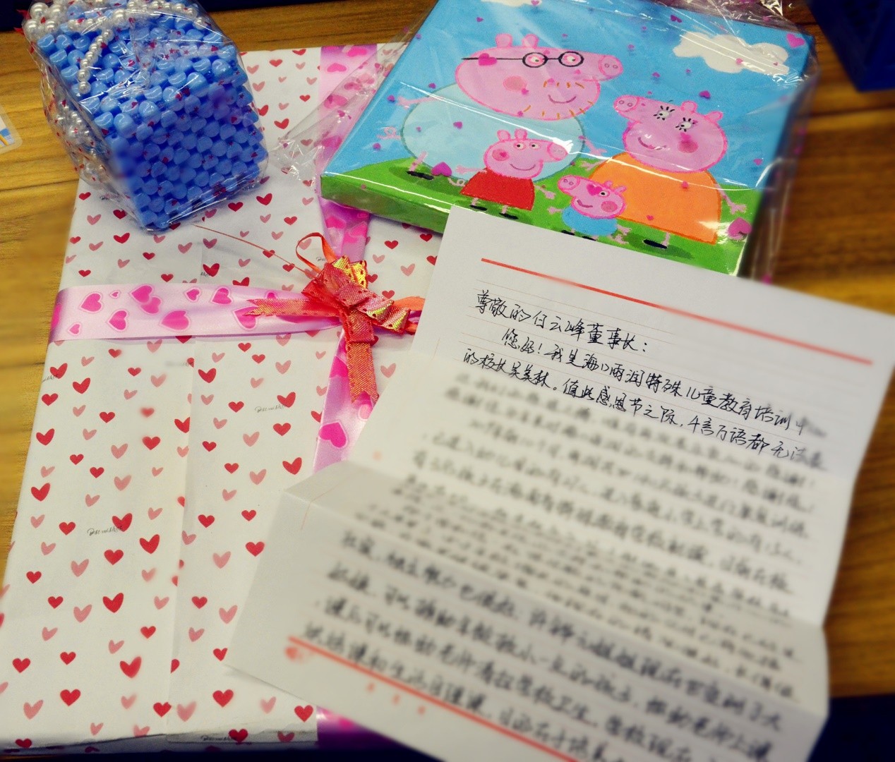寫信的人是海口雨潤特殊兒童教育培訓(xùn)中心校長吳美林,禮物則是由學(xué)校的自閉癥兒童及智力發(fā)育遲緩兒童親手制作,一同寄過來的還有一沓厚厚的照片,那是學(xué)校孩子們接受教育和康復(fù)訓(xùn)練的活動(dòng)掠影。